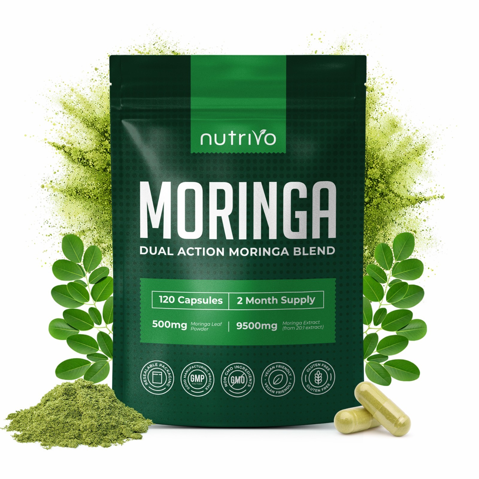 Moringa Capsules 6000mg – High Strength Moringa Leaf | 120 Capsules (Pack of 2)