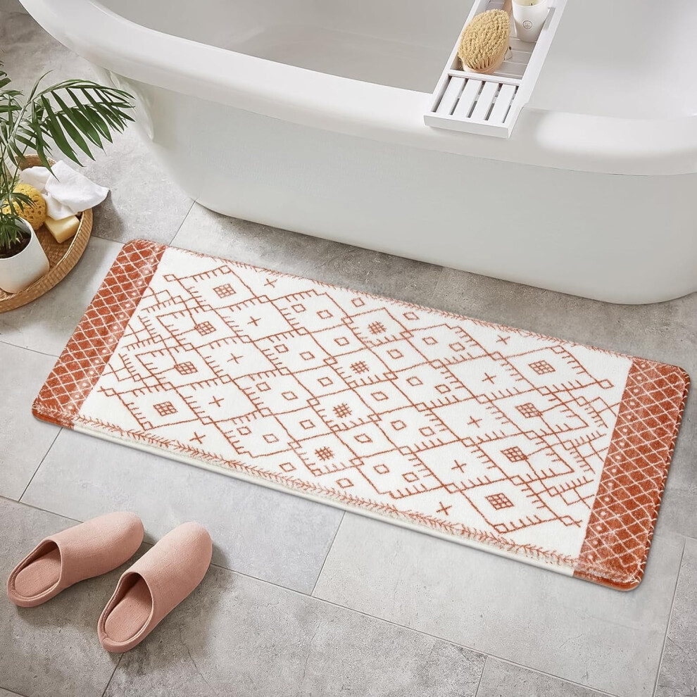 Uphome Bathroom Runner Rug 18x47 inch Boho Long Bath Mat Non-Slip Moroccan Geometric Farmhouse Bath Rug Soft Velvet Machine Washable Floor Mats for Bathtub Sink Shower