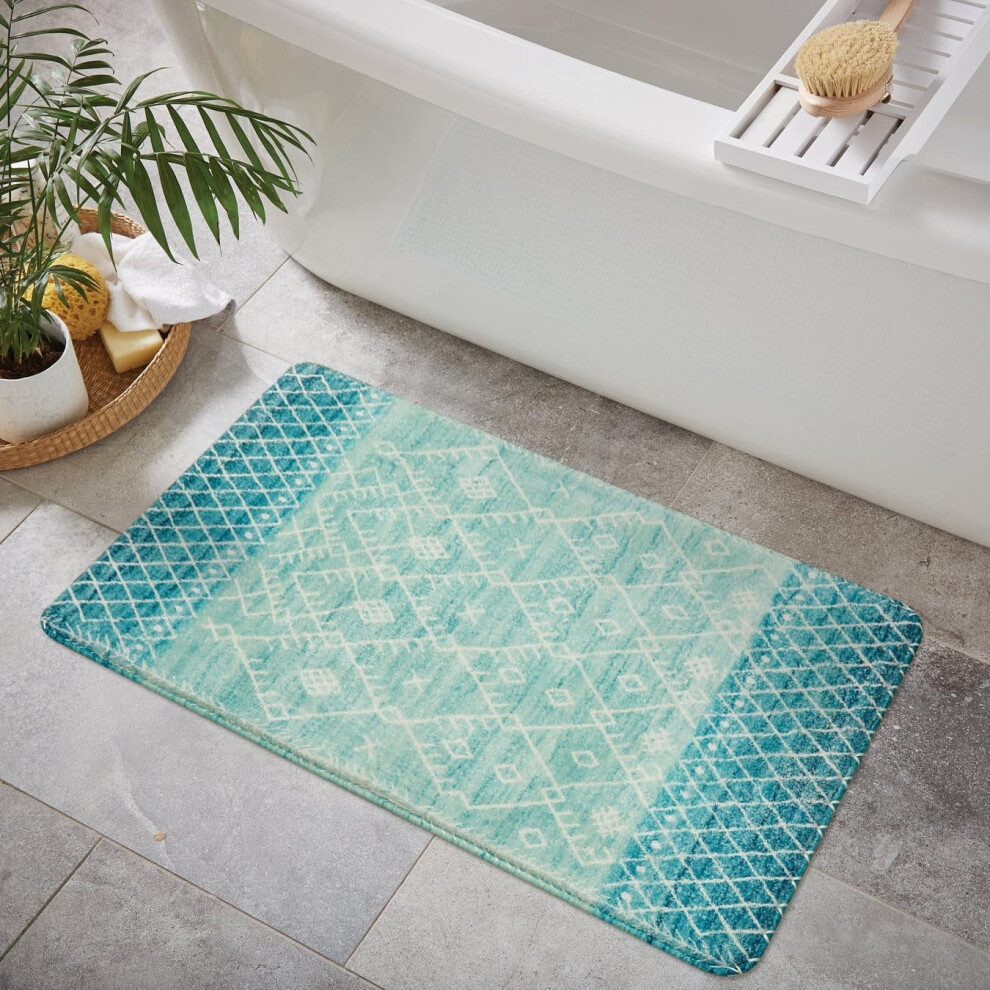 Moroccan Geometric Design Bath Mat, Machine Washable Boho Bathroom Rug 60x90cm, Quality Material Non-Slip Backing for Bathroom Kitchen Bedroom (1)