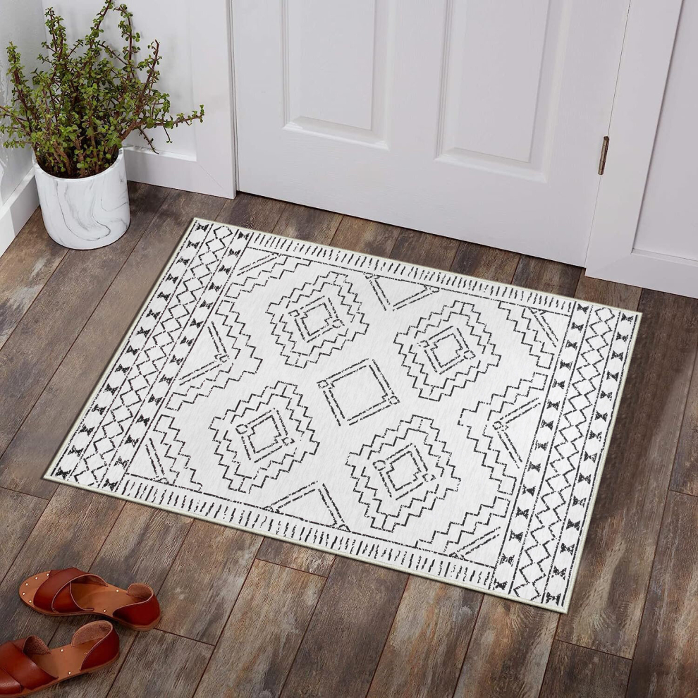 Geometric Design Area Rug, Boho Style Bathroom Rugs, Durable Low-Pile Chenille Runner, Non-Slip Moroccan Bath Mat, Machine Washable Velvet Rug for Hig