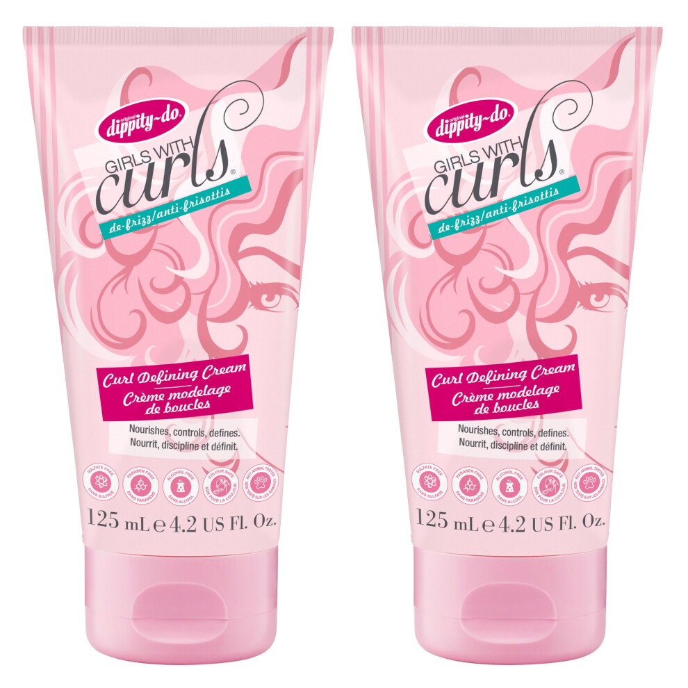 Dippity Do Girls with Curls Leave-In Curl Defining Cream - Anti-Frizz Styling Cream for Curly & Wavy Hair - Includes Shea Butter & Coconut Oil to