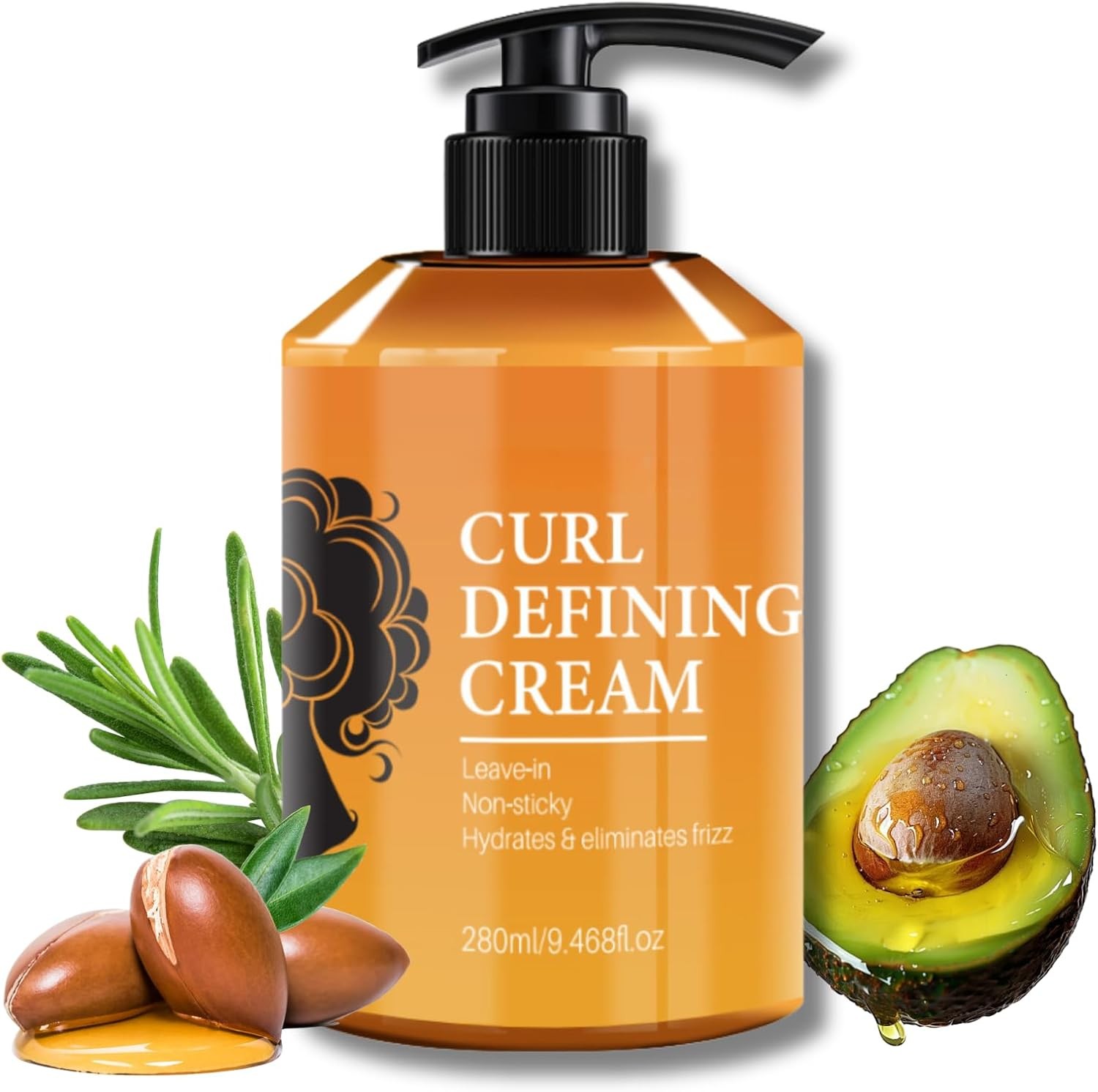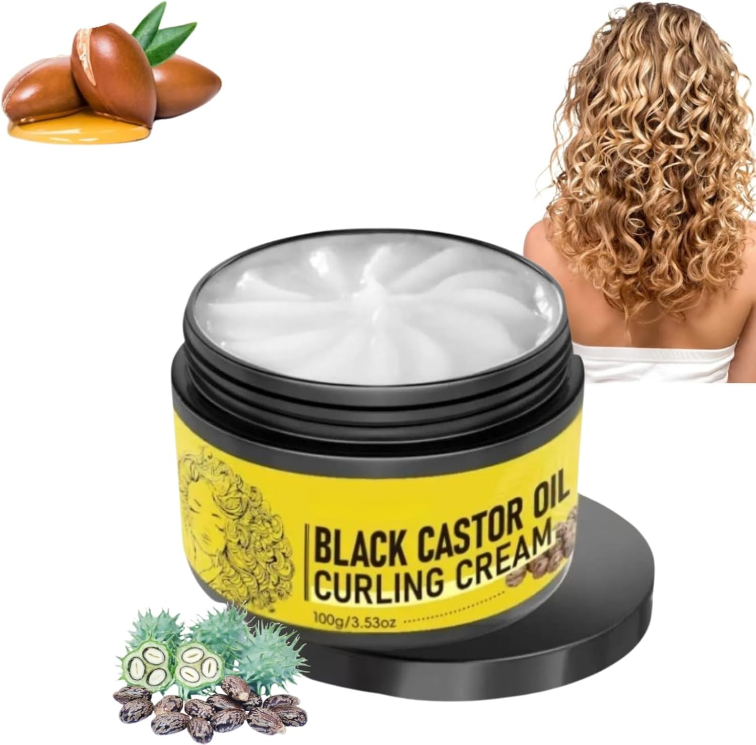Curl Defining Cream with Argan and Black Castor Oil, Anti Frizz Hydrating Formula for Curly Hair