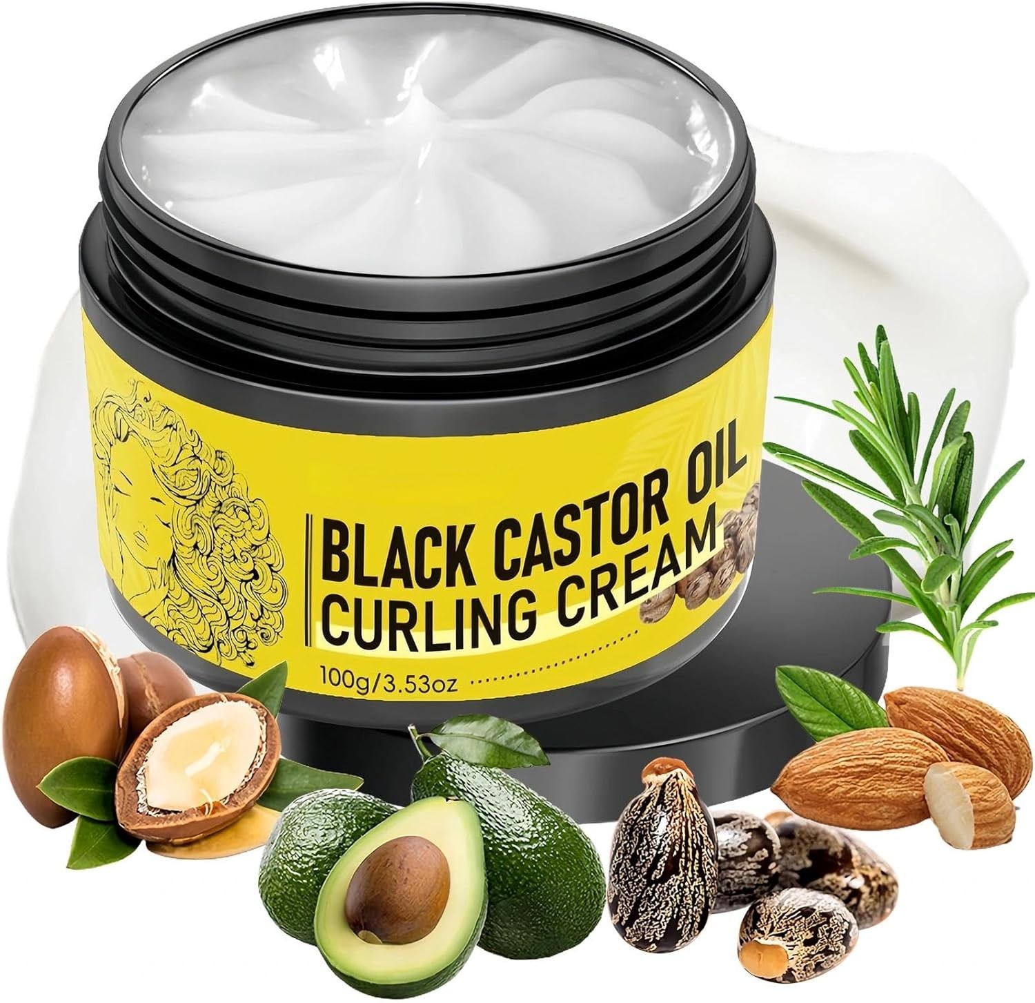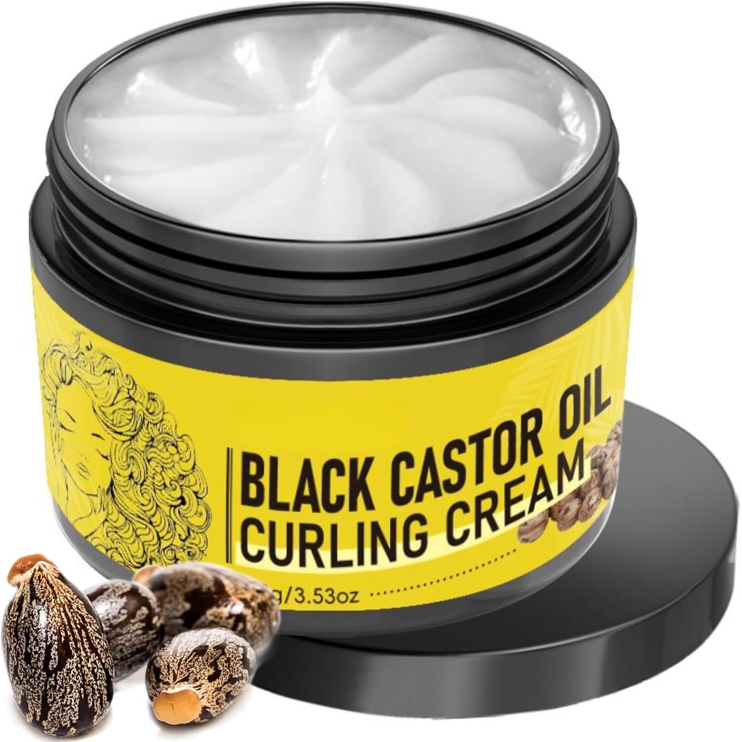 Black Castor Oil Curling Cream for Curly Hair – Curl Defining Cream for Frizz