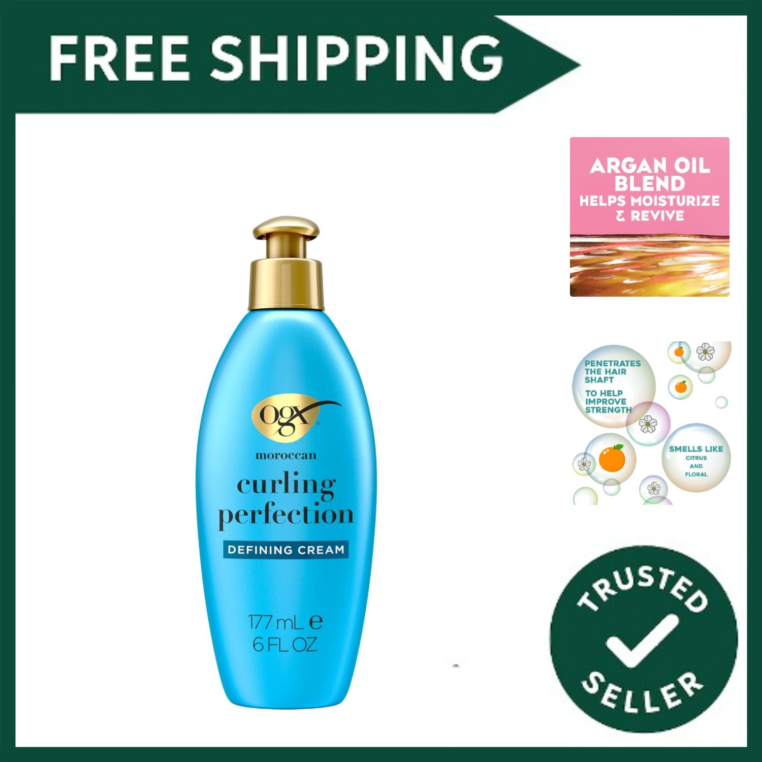 Curl Defining Cream for Curly Hair with Argan Oil, Frizz Control and Moisture Boost for All Curl Types