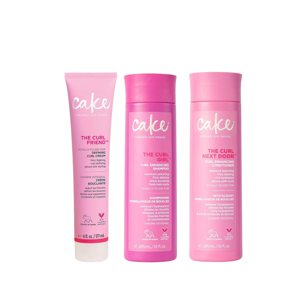Cake Beauty Curl Friend Curl Defining Shampoo Conditioner Cream Set Avocado Argan Oil Curly Hair Products AntiFrizz Cruelty Free Vegan Gift Set