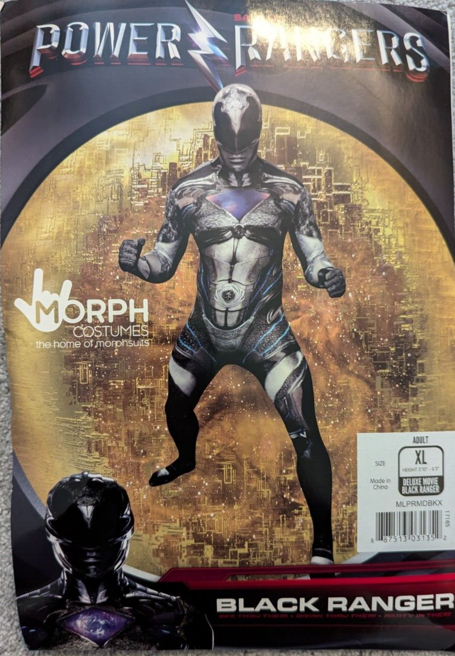 Official Black Power Ranger Morphsuit Fancy Dress Costume - size Xlarge - 5”10-6”1 (176cm-185cm)