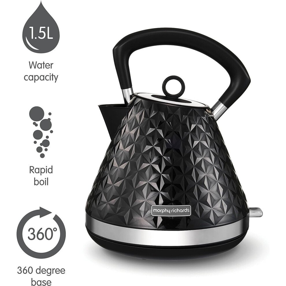 Morphy Richards Vector Pyramid Kettle 108131 Traditional Kettle Black + 4 Slice Toaster 248131 Black Four Slice Toaster Black Toaster