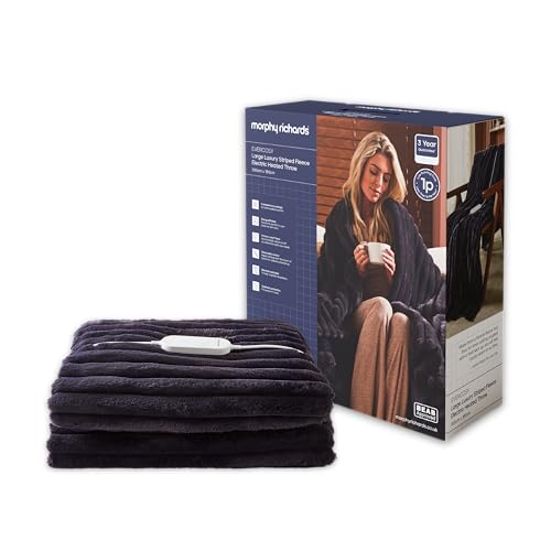 Morphy Richards EverCosy Luxury Striped Fleece Electric Heated Throw, 200x180cm, 9 Heat Settings, Detachable, Teddy/Flannel Fleece, Overheat Protection, Auto Shut Off, Machine Washable, Navy, 610105