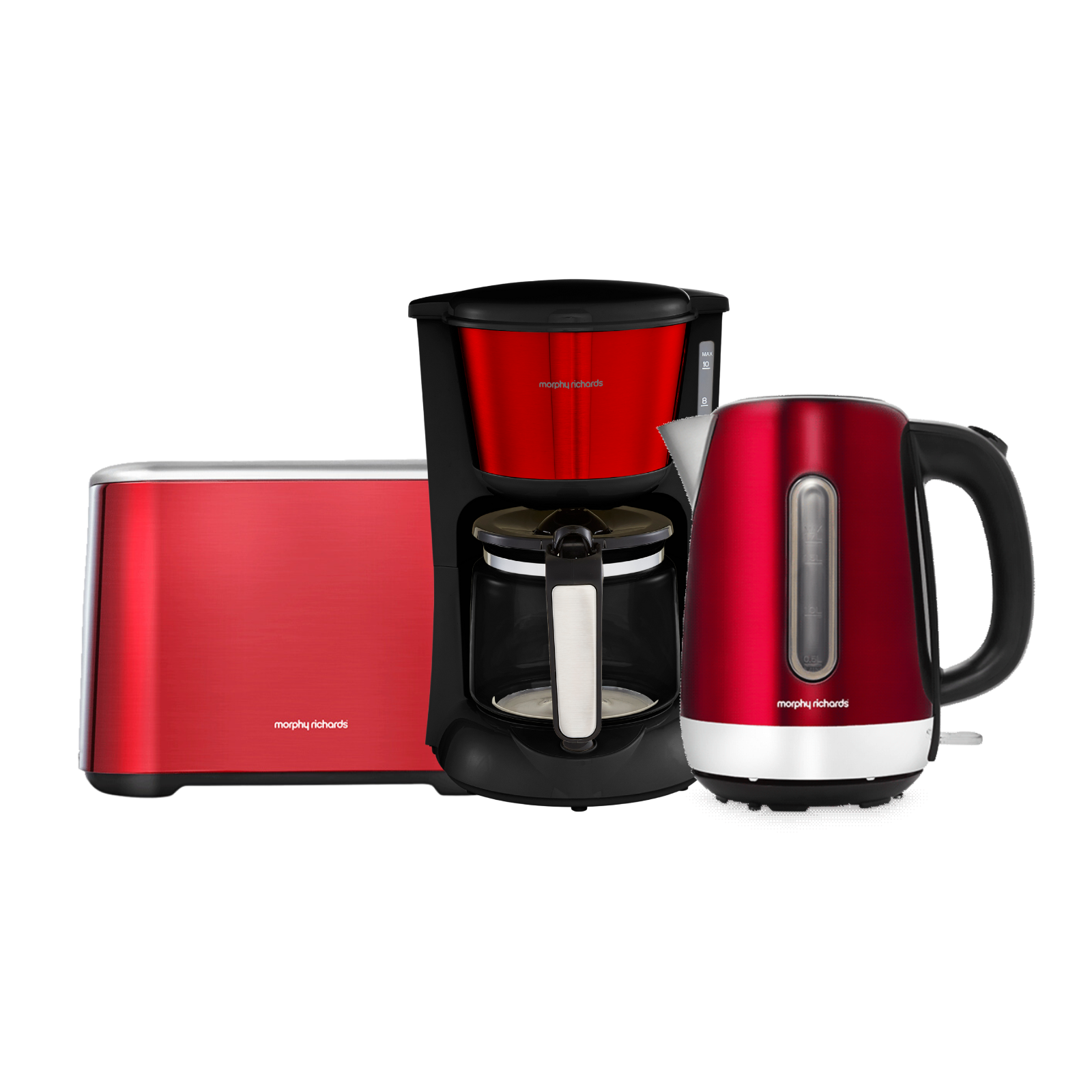 Explore our collection of Morphy Richards red kettles. Compare features and prices to find the perfect kettle for your kitchen. Choose from a variety of colours including black, silver, stainless steel, and of course, red. With options like dry boil protection and cordless design, our kettles combine style and functionality. Browse our selection and find the ideal Morphy Richards red kettle for you.