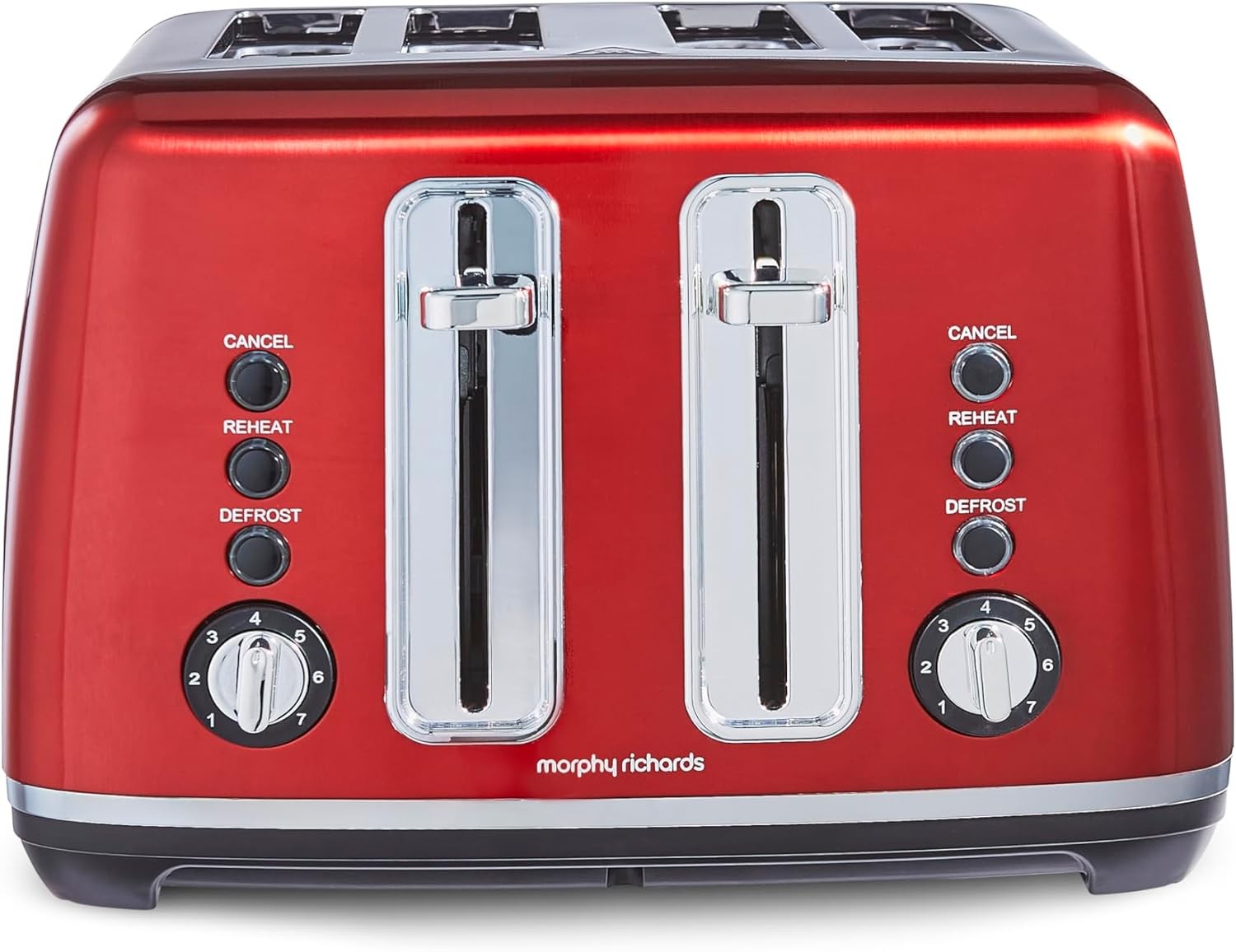 Morphy Richards Venture Red 4 Slice Toaster - Defrost Setting - High Lift Feature - 240133