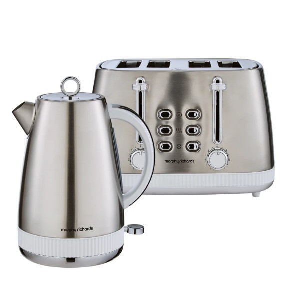 Morphy Richards Mexborough Kettle & 4 Slice Toaster Stainless Steel / White Trim