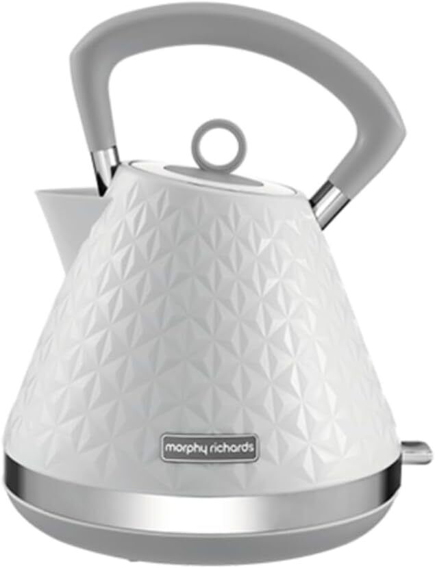 Morphy Richards Vector Pyramid Kettle, 1.5L, 3kW Rapid Boil, Anti Limescale Filter, Boil Dry Protection, Water Window, Pull Ring Removeable Lid, 360 Cordless Base, White,108134