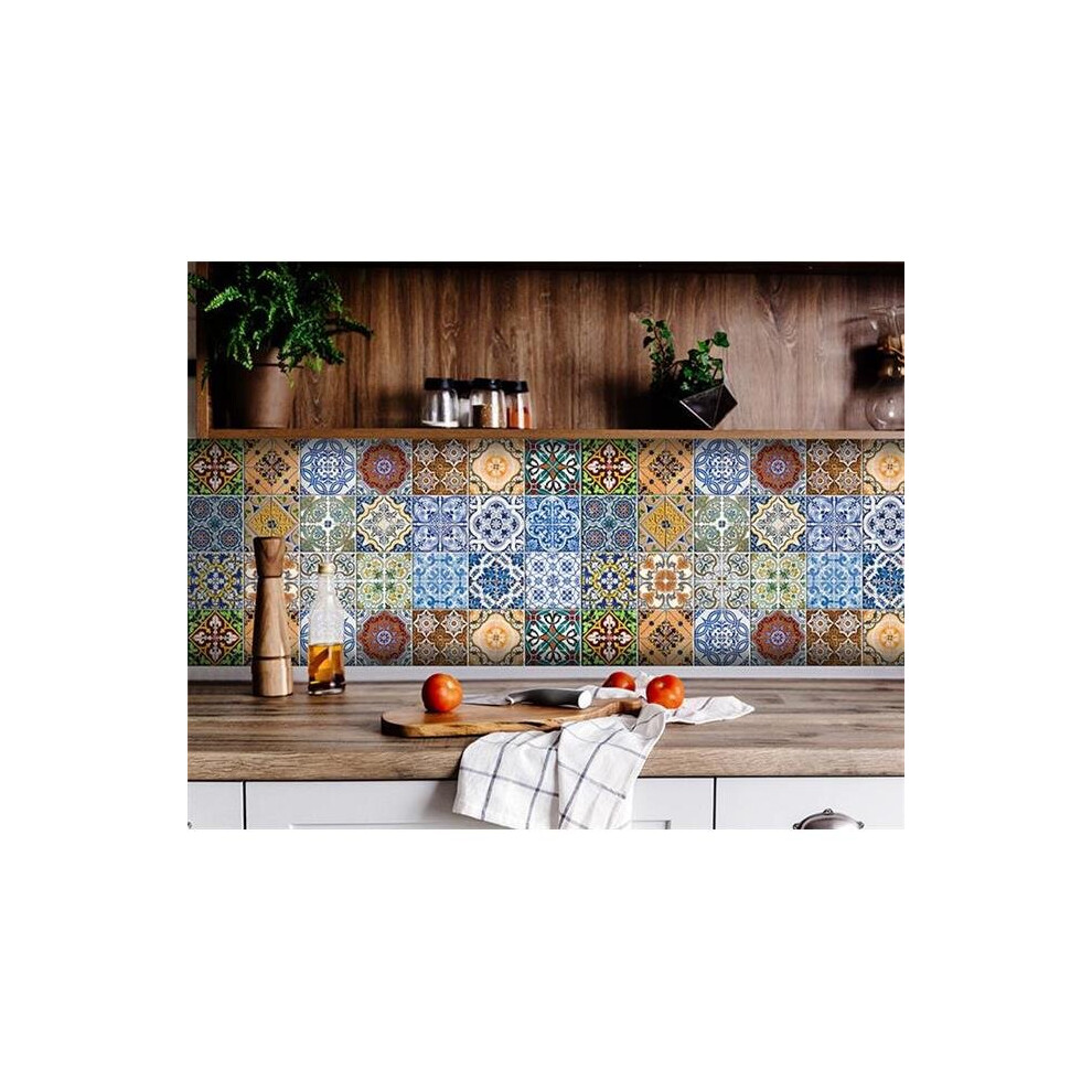 HomeRoots 400068 7 x 7 in. Blue Red Yellow Mosaic Peel & Stick Tiles