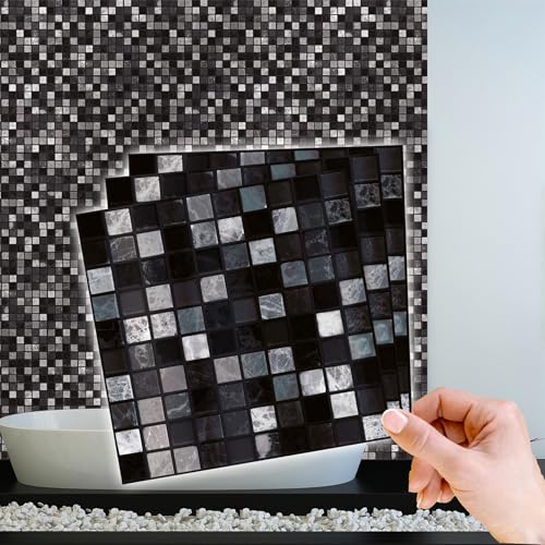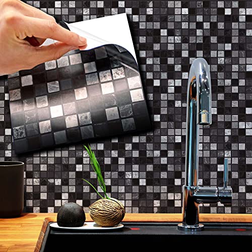 LPS Self Adhesive Wall Tiles Stickers - 10 PCS Black grey Moroccan Mosaic Style Kitchen Wall Art DIY Tiling Traditional Vintage Design Peel And Stick Tile Paint Stick on Tiles (black marble)