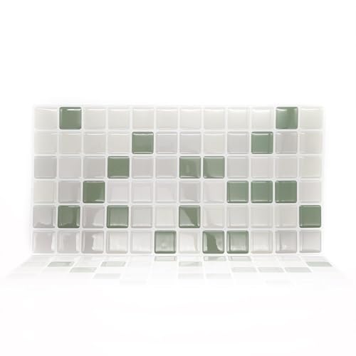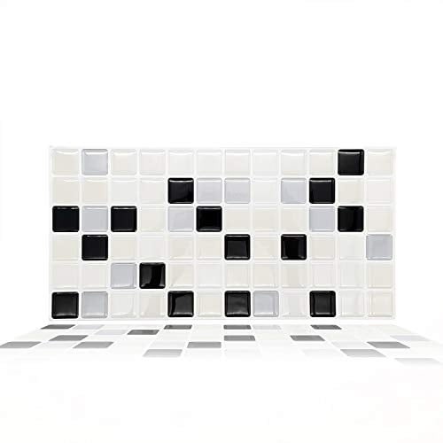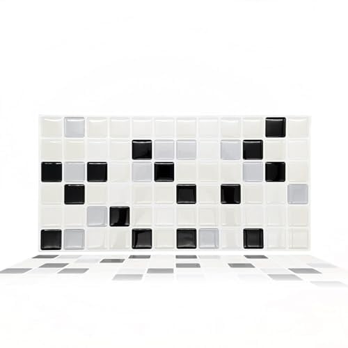 WALPLUS 12 Sheets 30x15cm Shades of Grey Mosaic Glossy 3D Tile Stickers 30x15cm Splashbacks Vinyl Stick on Tiles Backsplash Peel and Stick Bathroom Kitchen Decor Tile Paint Spring Easter Decoration