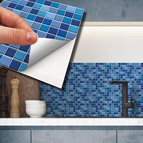 Lukery 20/30/40 PCS Tile Stickers Stick on Tiles, Self Adhesive Wall Tiles for Kitchen Bathroom, Oil Proof Peel and Stick DIY Floor Mosaic Pattern Wall Tiles, 10x10cm (20PCS,Blue Mosaic)