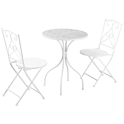 Outsunny 3 Pieces Garden Bistro Set, Folding Outdoor Single Chairs and Mosaic Garden Table Furniture Set for Patio, Balcony, Deck, White