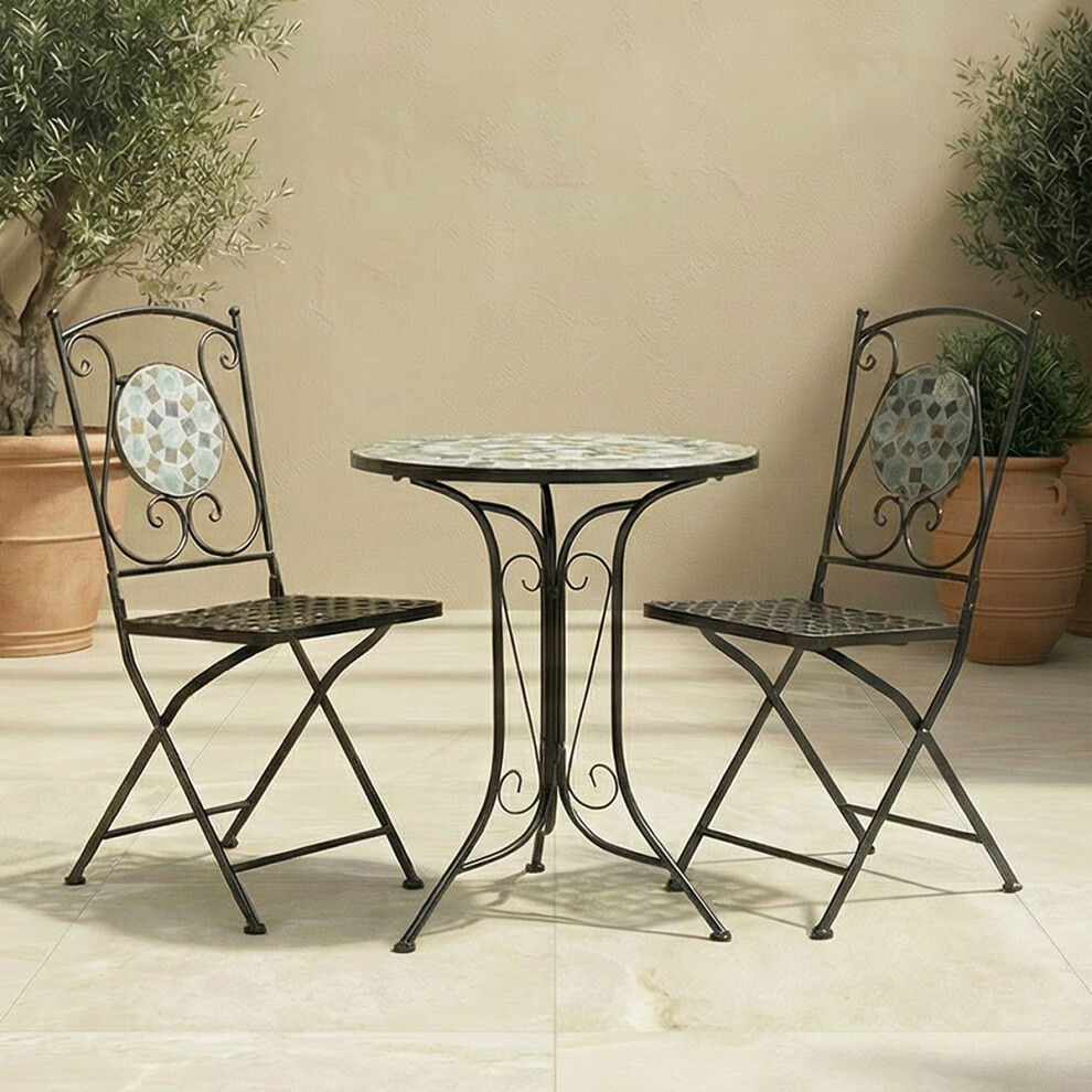 Azuma Garden Mosaic Bistro Set Black Metal Table 2 Chairs Patio Furniture Greek Style - Santorini