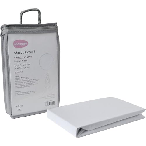 Shnuggle Waterproof Moses Basket Sheet – Super Soft Tencel Jersey Mattress Protector – Breathable, Absorbent & Anti-Allergy Baby Moses Basket Mattress Cover