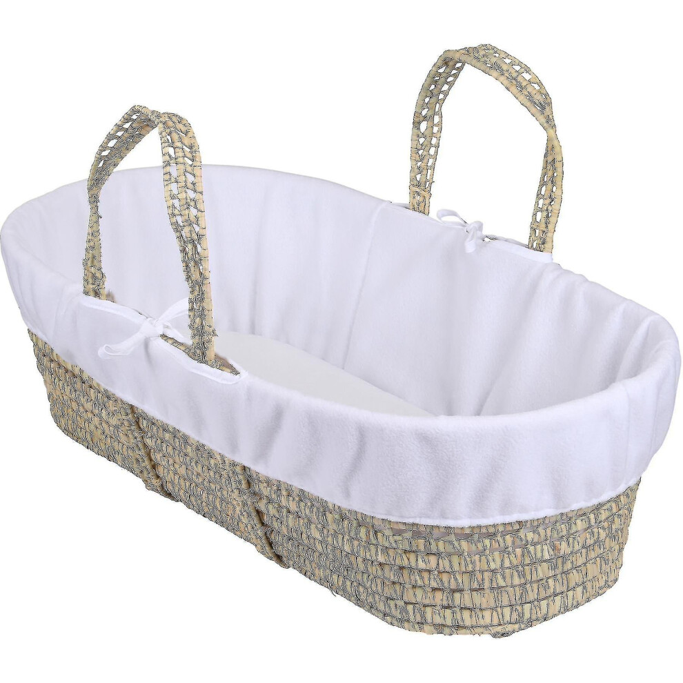 Kinder Valley White Knitted Moses Basket with Natural Folding Stand, Fibre Mattress & Padded Liner