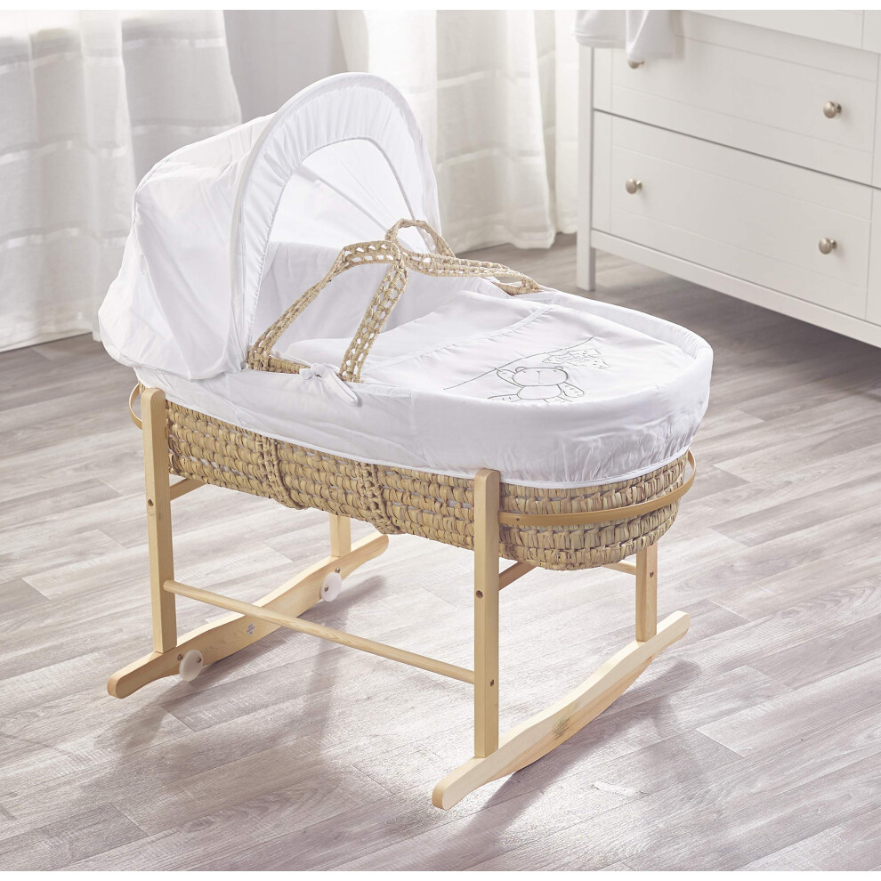 ELEGANT BABY White Teddy Wash Day Palm Moses Basket with Chester Rocking Stand Natural, Adjustable Hood, Fibre Mattress & Padded Liner