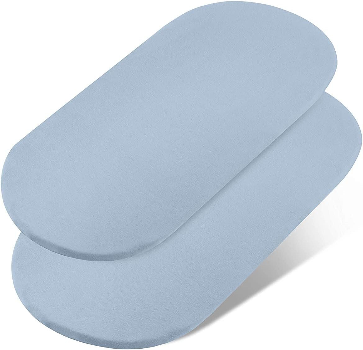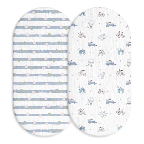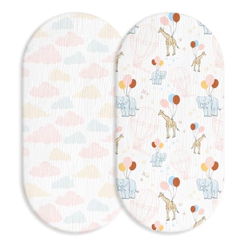 2 Packs Moses Basket Sheets 32”*17“ Newborn Pram Sheet Cozy and Lightweight Muslin Bassinet Fitted Sheet Cotton Crib Sheets Baby Fitted Sheets for Boy and Girl Oval, Hourglass & Rectangle Bassinet