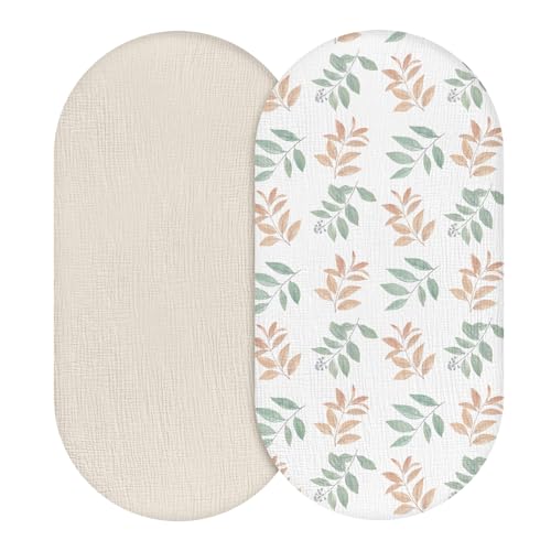 Moses Basket Fitted Sheets x 2,Muslin Bassinet Fitted Sheets,Pram Sheets Fitted 83×43 cm 100% Cotton Crib Sheets for Boy and Girl Baby Fitted Sheets Fit for Oval, Rectangle Bassinet Leaves