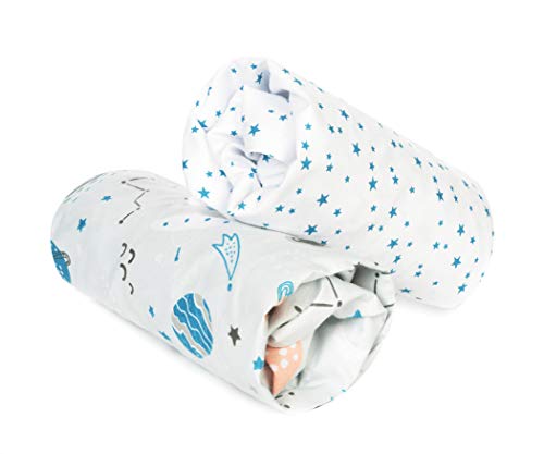 Lilly Belly Pack of 2 Next to Me Crib Sheets 100% Organic Cotton - Compatible with Moses Basket Sheets, Cot Bed Sheet, Organic tutti bambini cozee Sheet 90x55cm (Stars).