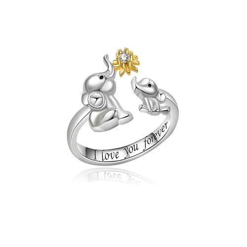 VYYU Silver Ring for Mother Daughter - I Love You Forever Rings with Big & Small Elephants, Adjustable Open Rings for Mum Daughter Jewellery Gifts