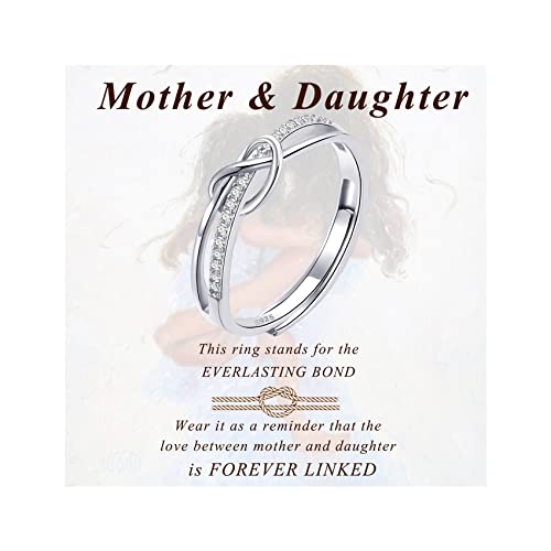 MOROTOLE To My Daughter Sterling Silver Ring, Love Knot Silver Ring for Women Forever Linked Mum And Daughter Rings Adjustable Thumb Rings Mother Daughter Gifts…