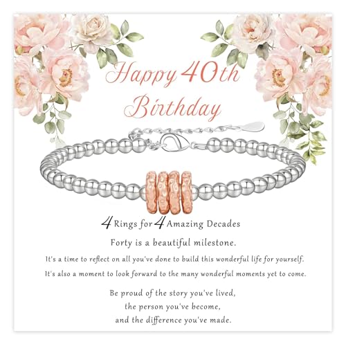 LynixTrade 40th Birthday Gifts for Women - Silver Bracelet with 4 Rose Gold Rings Birthday Card and Pink Gift Box, Ideas of 40th Birthday Gifts for Daughter Sister Mother Auntie Best Friends