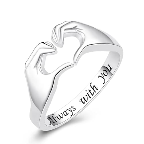 925 Sterling Silver Hug Rings for Women, I Love You Forever Love You Mother Gift Sister Gifts Engraved Words Hugging Hands Open Ring Friendship Jewelry Gift (Always daughter forever friend)