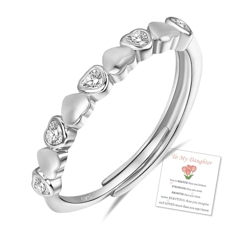 DOA 2mm To My Daughter Sterling Silver Adjustable Heart Ring, Thumb Rings for Women, Gift for Daughter Ring, Daughter Gift Jewelry - Christmas, Mother's Day Gifts