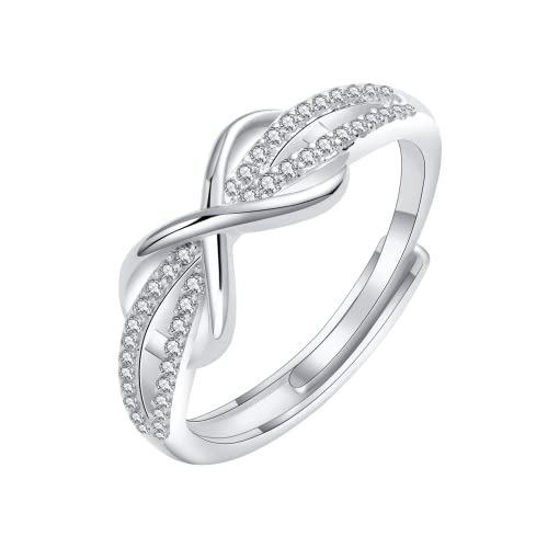 NEVEGE Silver Rings for Women Infinity Love Promise Rings Silver Ring with Cubic Zirconia Adjustable Mother Daughter Ring for Mum Birthday Gift