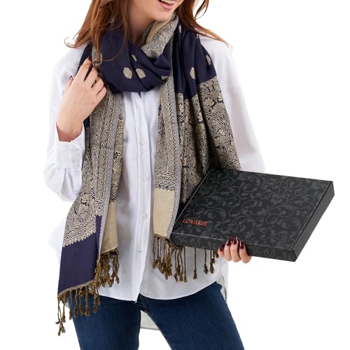 LOVARZI Scarfs for Women Gift Boxed - Blue Pashmina Scarves - Ladies Christmas & Mother's day & gift ideas - Presents for her