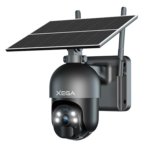 Xega 4G LTE Security Camera No WiFi, 2K Super HD Solar Powered Wireless Outdoor 4G Security Camera, PIR Motion Sensor, Night Vision, 2 Way Talk, SIM Card Included