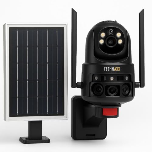 Technaxx 4G Dual Camera Outdoor Security Cam with 8W Solar Panel TX-329-3MP FullHD, 345° Rotation, Night Vision, 8000mAh Battery, PIR Motion Sensor, 2-Way Audio, IP65, 0.4s Trigger Time