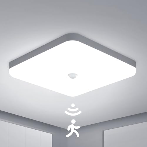 EIDEARAY LED Motion Sensor Ceiling Light Indoor, 22W Cold White 6000K Ceiling Light, Square Design Sensor Light,24 * 20 * 9CM,Suitable for Garages, Hallway, Aisle, Porch, Corridor,Entrance (Silver)