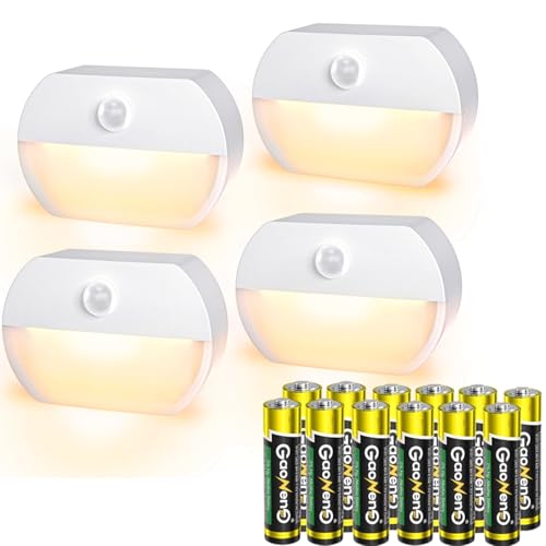 Motion Sensor Light Indoor,Led Night Light Battery Powered Auto/ON/Off Stair Sensor Lights with Batteries, Safe Lights for Toilet, Hallway, Bathroom, Kitchen, Childrens Room,4 Pack