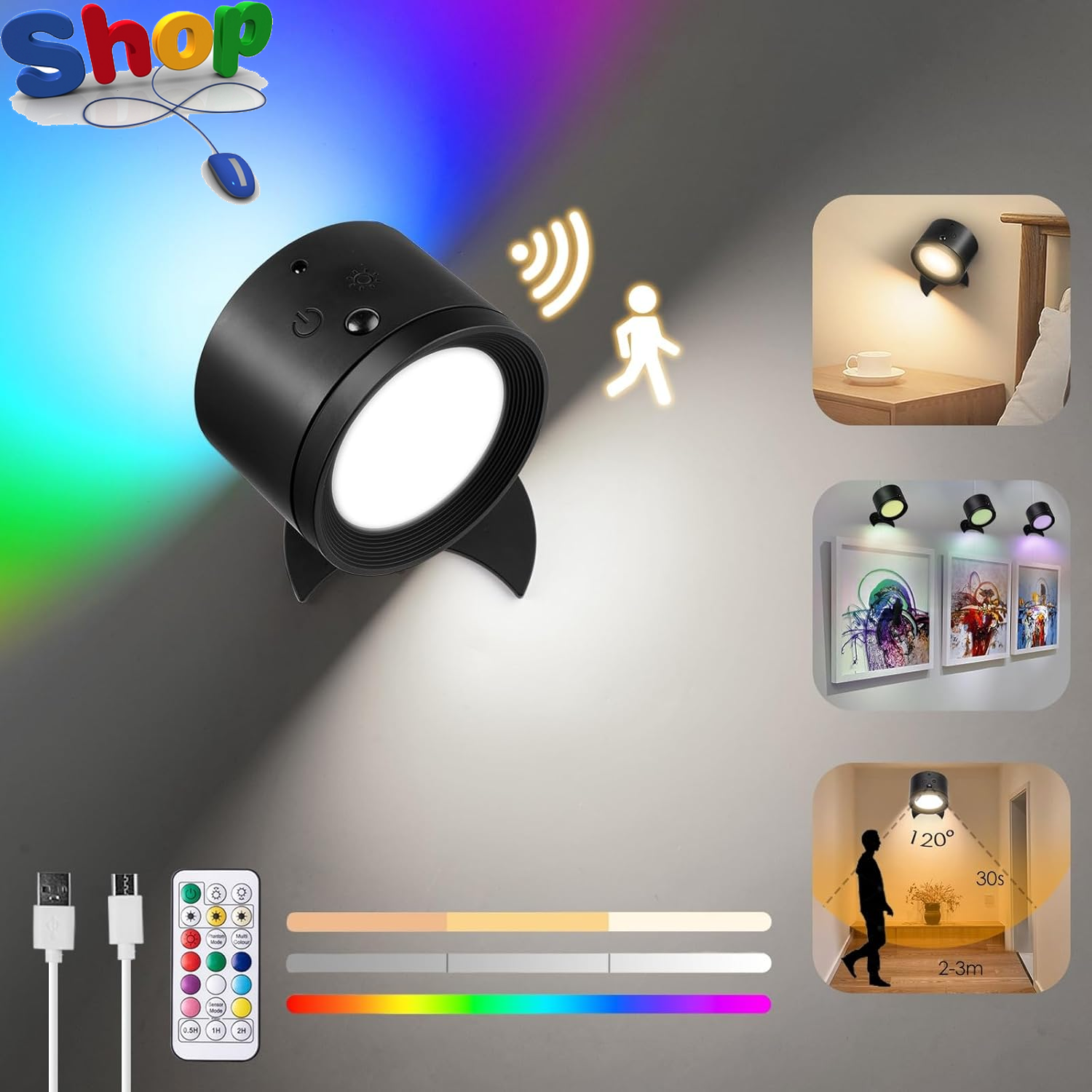 Battery Operated Rechargeable Motion Sensor Wall Light Indoor, Remote and Touch