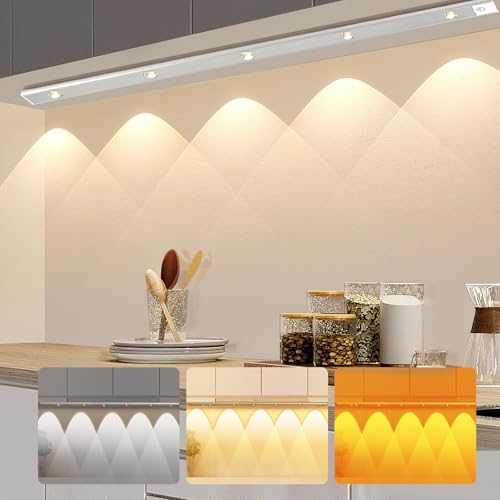 OUILA Dimmable Under Cabinet Lights, 23CM 1000mAh Motion Sensor Light Indoor Wireless USB Rechargeable 3 Color Temperature Stepless Dimming for Stairs Wardrobe Hallway Kitchen