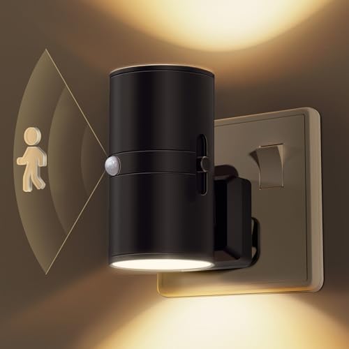 JandCase Motion Sensor Night Light Plug in Wall, Plug in Night Light, ON/Off/AUTO Lighting Mode, Warm White, Dimmable 0-100LM, Low Energy Motion Sensor Light Indoor for Hallway Bedroom Stairway,1 Pack