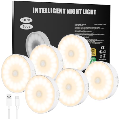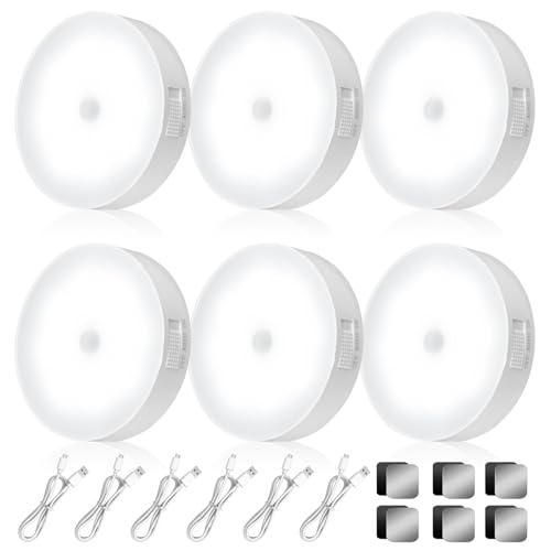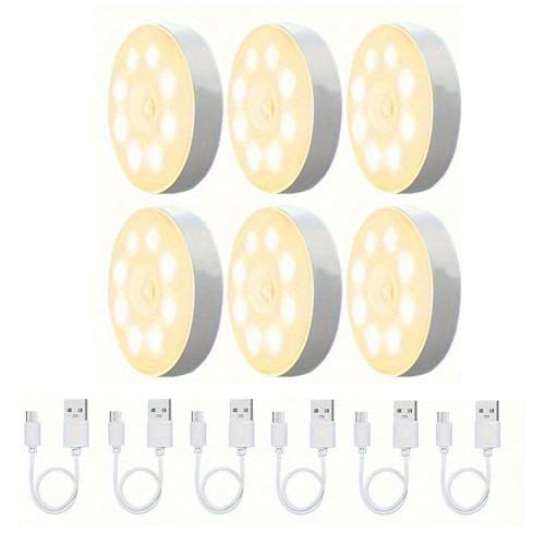 Luobannm6-Pack USB Rechargeable LED Motion Sensor Lights LED Indoor Closet Light Battery-Powered Induction Lighting for Home Warm