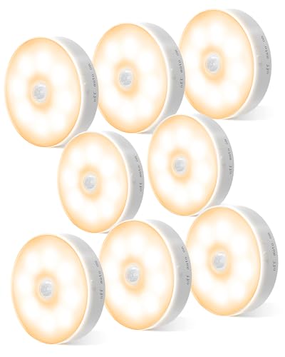 STAR-SPANGLED Motion Sensor Lights Indoor, Cordless Stick on LED Puck Lights AA Battery Powered for Under Cabinet, Cupboard, Wardrobe, Stairs, Closet, Kitchen, Hallway (3.1inch, Warm White, 3 Pack)