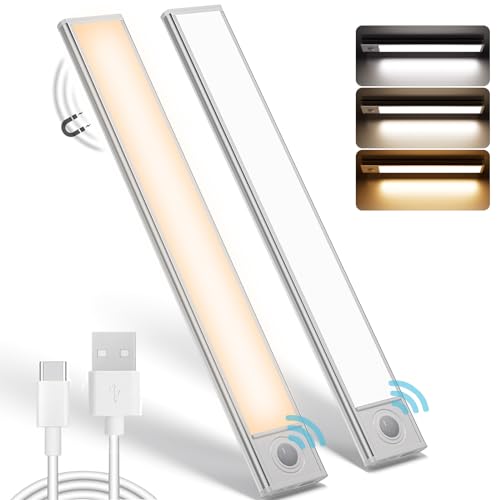 OUILA Under Cabinet Kitchen Lights, 64 LED [2 Pack] 3 Color Stepless Dimming Motion Sensor Lights Indoor, 1000mAh USB-C Rechargeable LED Lights for Cupboard, Kitchen
