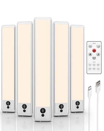 EZVALO Under Cabinet Kitchen Lights, 5 Pack of 3500K Dimmable Wireless Motion Sensor Lights Indoor with Remote Control, LED Night Lights for Kitchen,Wardrobe and Cupboard