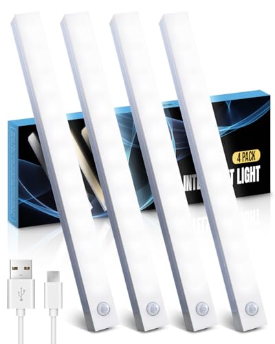 KALAHOL Under Cabinet Kitchen Lights 4 Pack, USB Motion Sensor Lights Indoor, Cupboard Light, 4 Modes, USB Type-C, Stepless Dimming, for Kitchen Wardrobe Bedroom Stairs (Cold White)