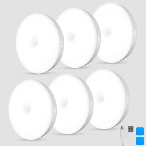 Buhdjfnke 6-Pack USB Rechargeable LED Motion Sensor Lights LED Indoor Closet Light Battery-Powered Induction Lighting for Home Warm