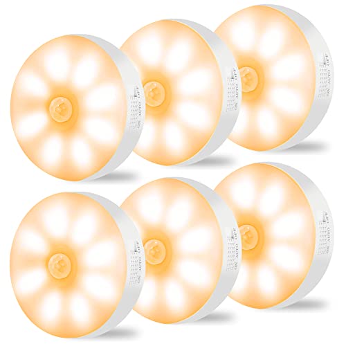Elydiva Battery-Powered USB Rechargeable LED Motion Sensor Lights 6-Pack Indoor Closet Light Induction for Home Warm