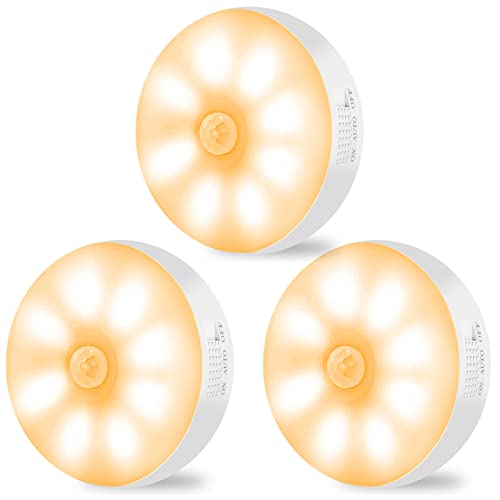 Lyridz Motion Sensor Night Lights (3 Pack), USB Rechargeable Night Light, Motion Sensor Lights Indoor ON/Off/AUTO Modes with Removable Magnetic Stick on Cupboard, Stair, Hallway, Bedroom (Warm White)